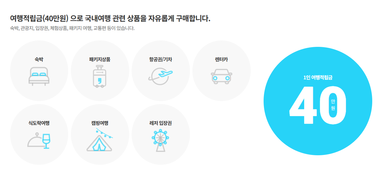이 지원금은 숙박, 교통, 관광지 입장권 등 다양한 국내 여행 상품 구매에 사용할 수 있어 국내 관광 활성화에도 기여합니다.