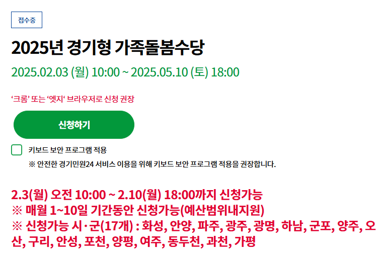 오늘은 그중에서도 경기도 가족돌봄수당에 대해 자세히 알아보겠습니다.