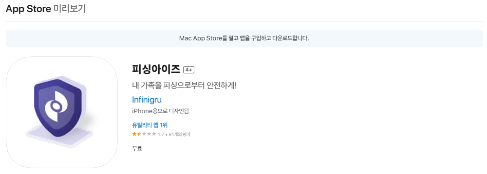 🔹 아이폰 사용자는 '피싱아이즈' 앱 활용 가능