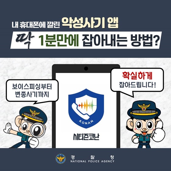 시티즌 코난은 경찰청 경찰대학 치안정책 연구소와 IT 보안 전문 기업 인피니그루가 공동 개발한 보이스피싱 예방 애플리케이션입니다. 📱